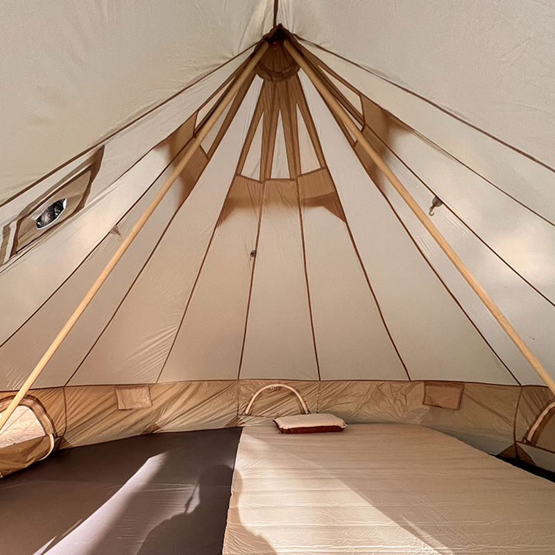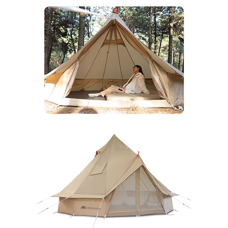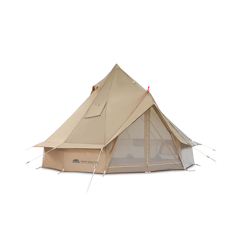 Ang yurt tent ay partikular na idinisenyo para sa madaling paglalakbay at compact na imbakan. Ang disenyo ng center-poste-free na ito ay hindi lamang pinapasimple ang proseso ng pag-setup ngunit makabuluhang pinatataas din ang panloob na espasyo, na nag-aalok ng mga gumagamit ng isang mas maluwang at komportableng karanasan. Ang tolda ay ginawa mula sa mataas na kalidad na tela na pinahiran na tela, na nagbibigay ng mahusay na hindi tinatagusan ng tubig at matibay na pagganap, ginagawa itong may kakayahang hawakan ang iba't ibang mga kondisyon ng panahon ng kamping, maging maaraw, maulan, o mahangin, tinitiyak ang maaasahang proteksyon. Bilang karagdagan, ang yurt tent ay nagtatampok ng apat na panig na nakamamanghang mesh, tinitiyak ang mahusay na bentilasyon habang epektibong pinapanatili ang mga insekto. Ang disenyo na ito ay hindi lamang nagpapabuti sa ginhawa ng tolda ngunit pinapanatili din itong cool sa panahon ng mainit na tag -init. Ang magaan na disenyo at kakayahang umangkop ay ginagawang isang mainam na pagpipilian para sa mga mahilig sa kamping, na nag -aalok ng kaginhawaan at kaginhawaan para sa parehong kamping ng pamilya at solo na pakikipagsapalaran.